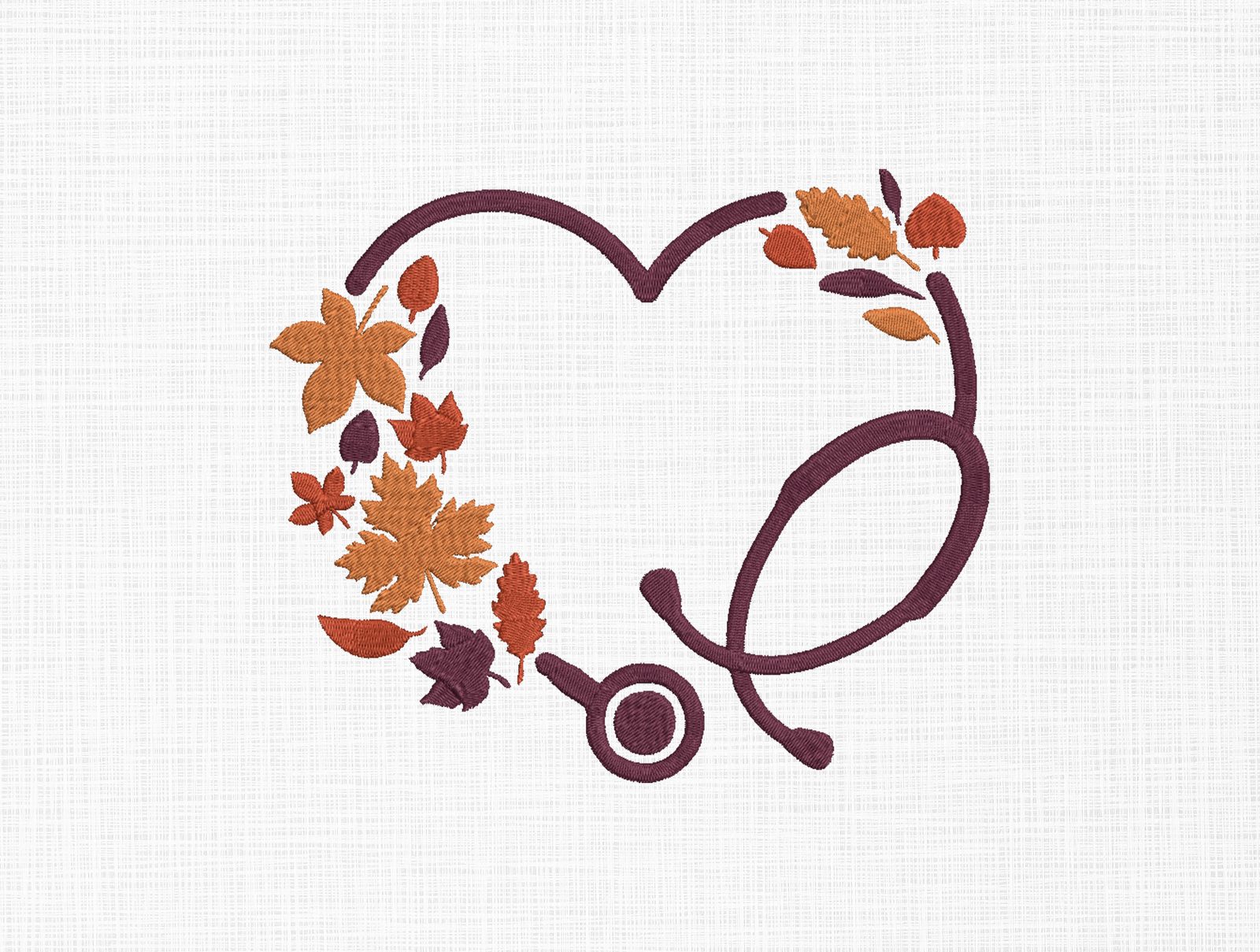 Autumn Leaves Stethoscope Embroidery Design – 5 Sizes