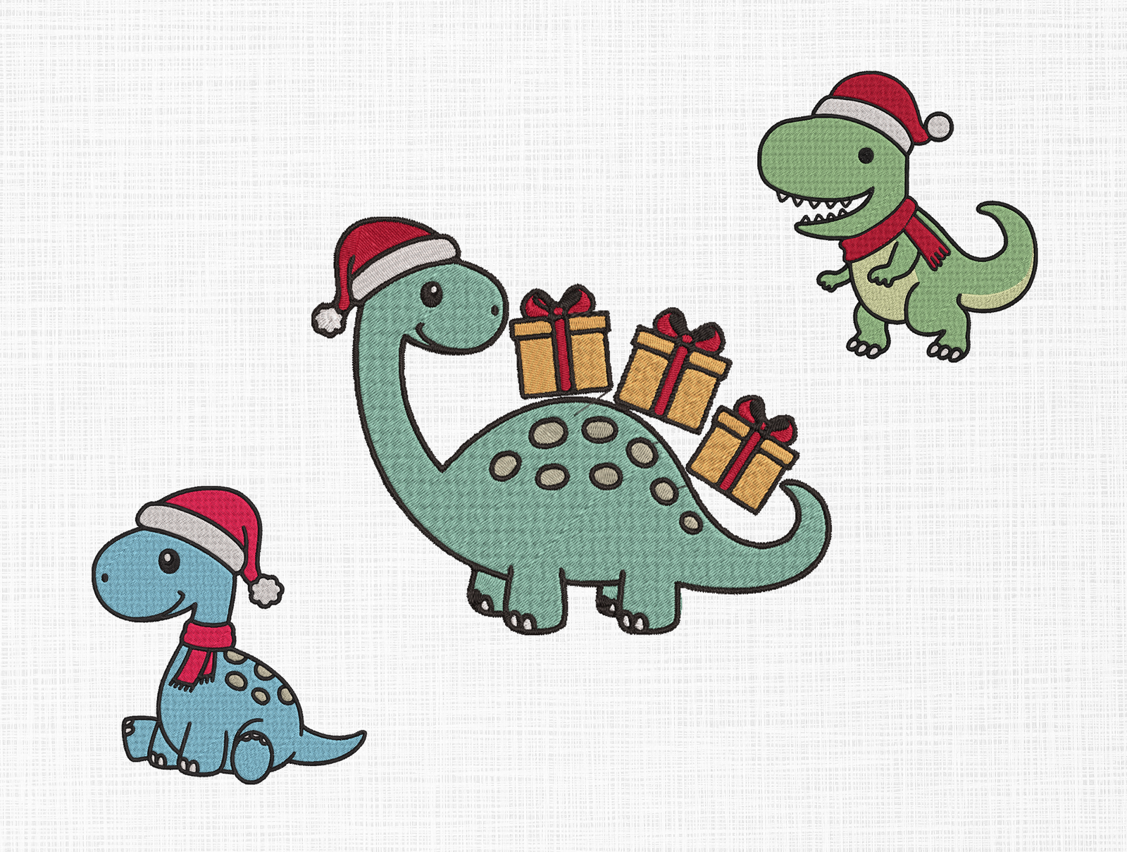 Christmas Dinosaurs Embroidery Design – 5 Sizes