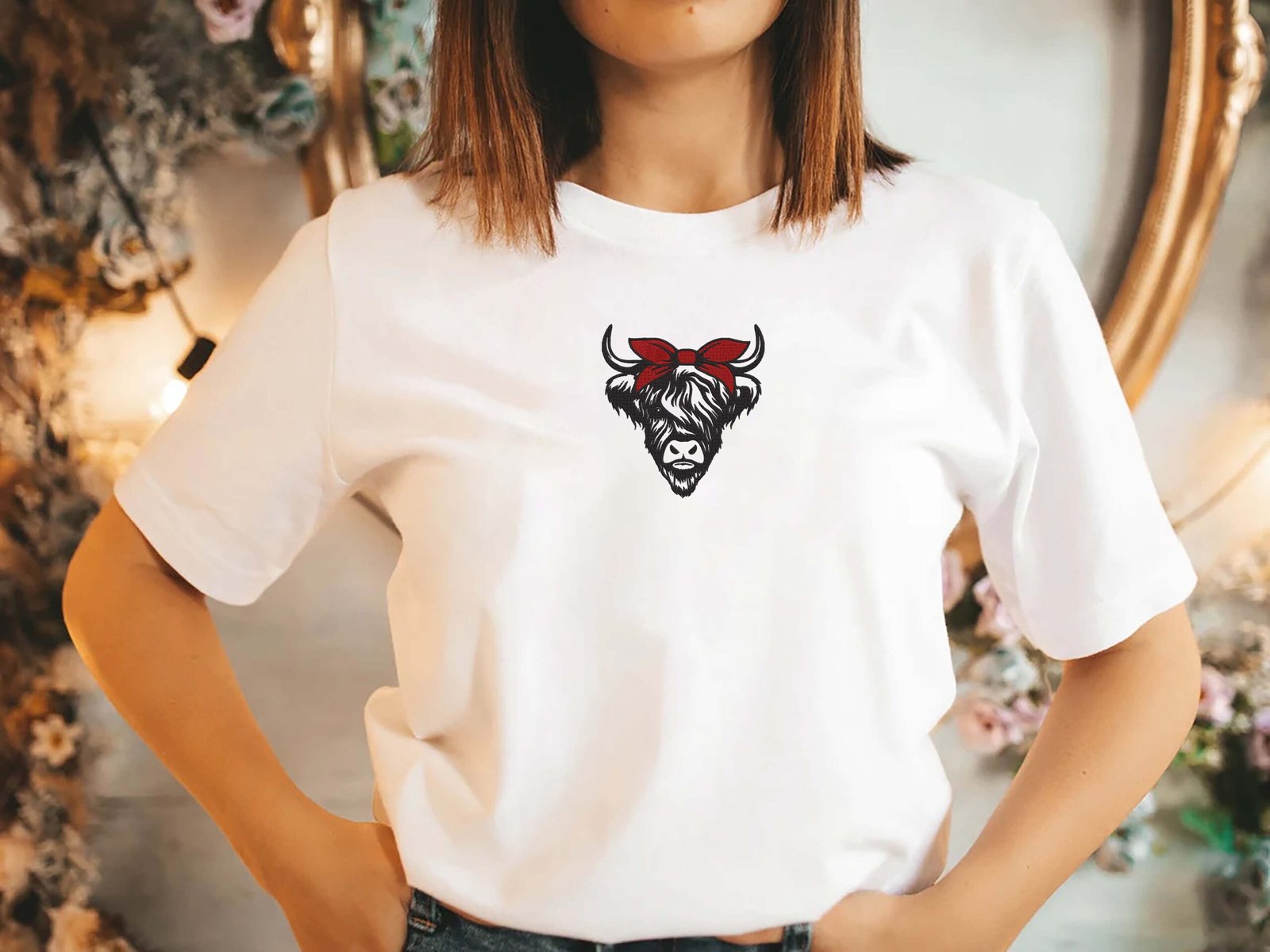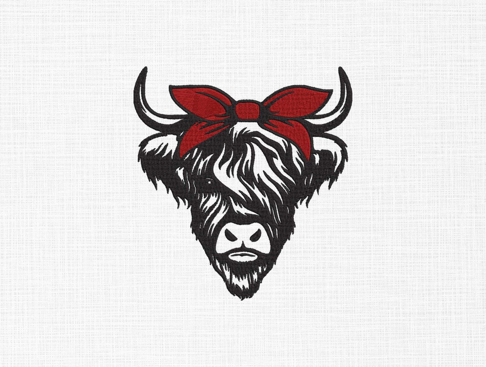 Highland Cow With Bow Embroidery Design – 5 Sizes