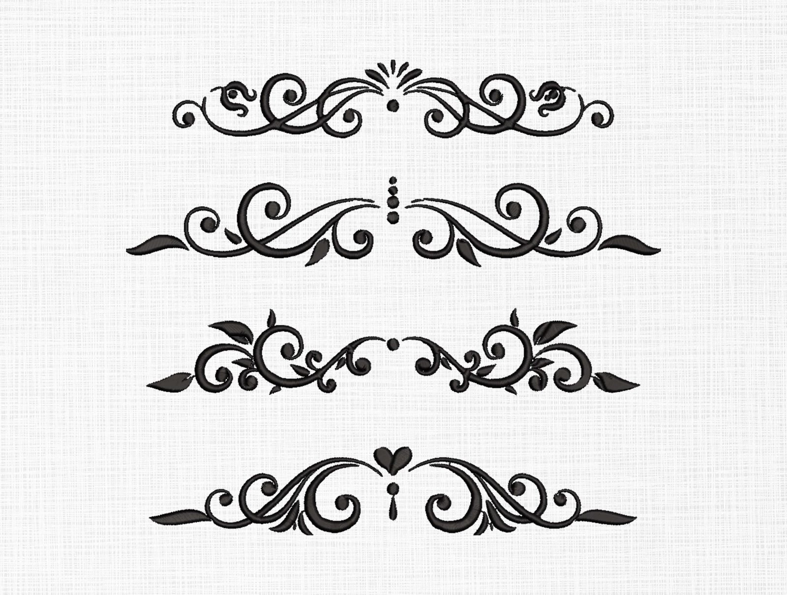 Swirl Border Accent Line Embroidery Design – 5 Sizes